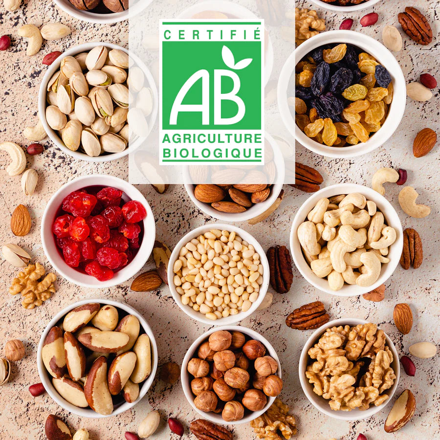 Avoir la certification AB signifie que nos produits sont composés d'au moins 95 % d'ingrédients issus du mode de production biologique, mettant en œuvre des pratiques agronomiques et d'élevage respectueuses des équilibres naturels, de l'environnement et du bien-être animal.